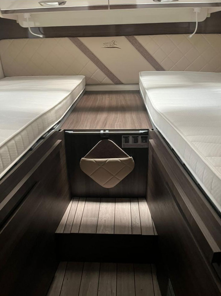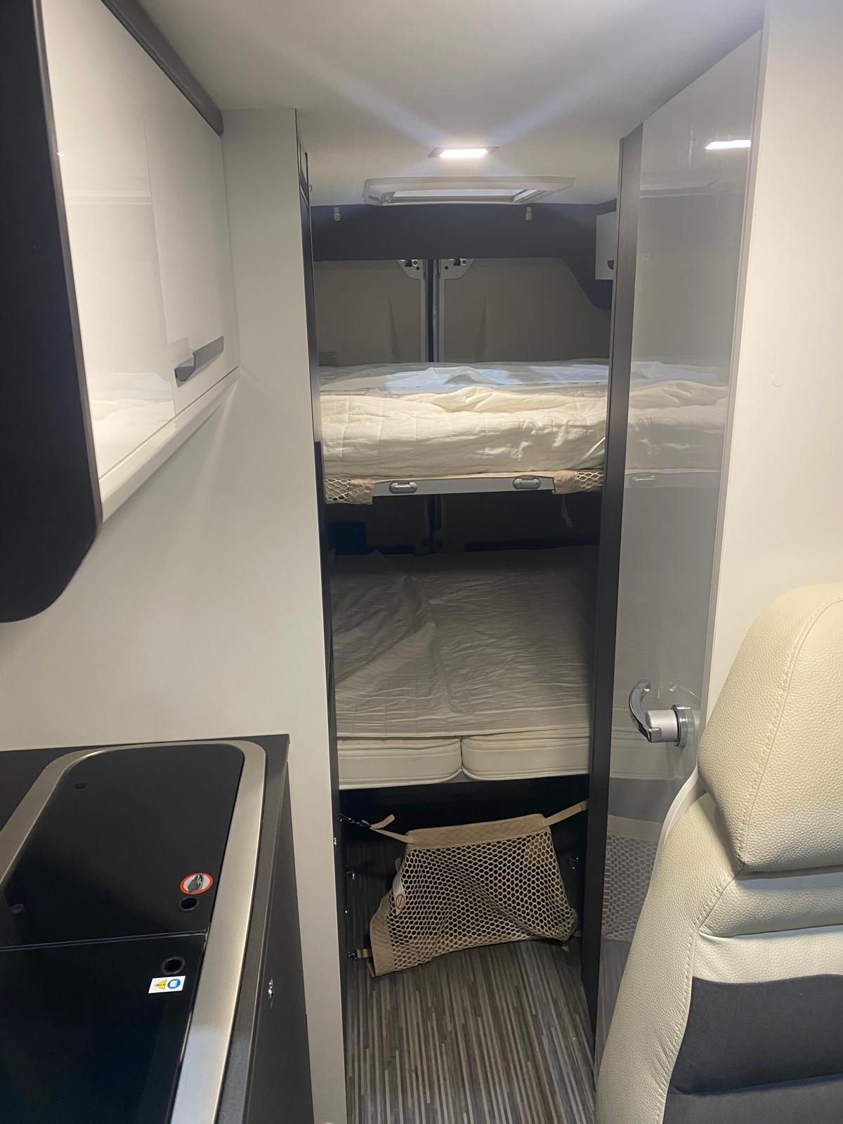 Lits jumeaux, automatique, avec climatisation, réfrigérateur compact, deuxième batterie, caméra de recul…